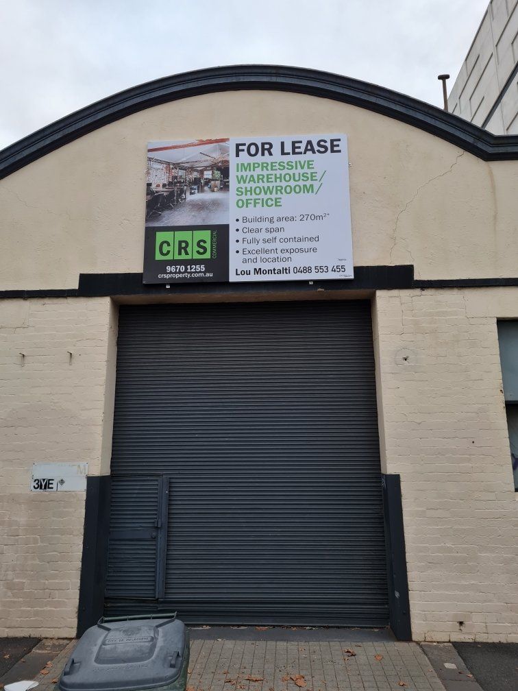 This conjunctional window poster creatively uses three separate window panels to advertise an inner city opportunity and results in a successful sale for the vendor.